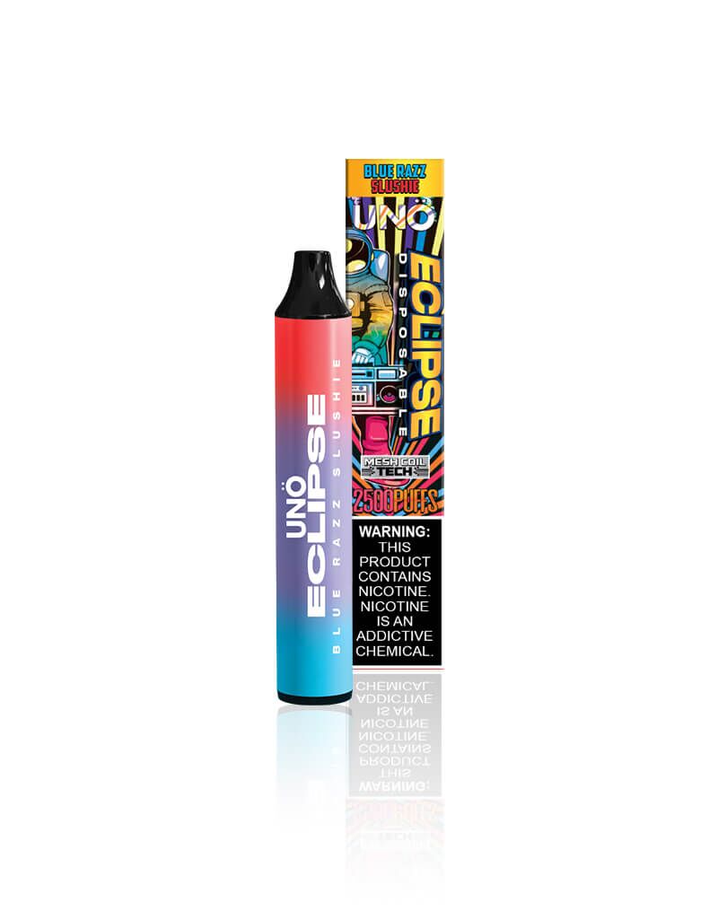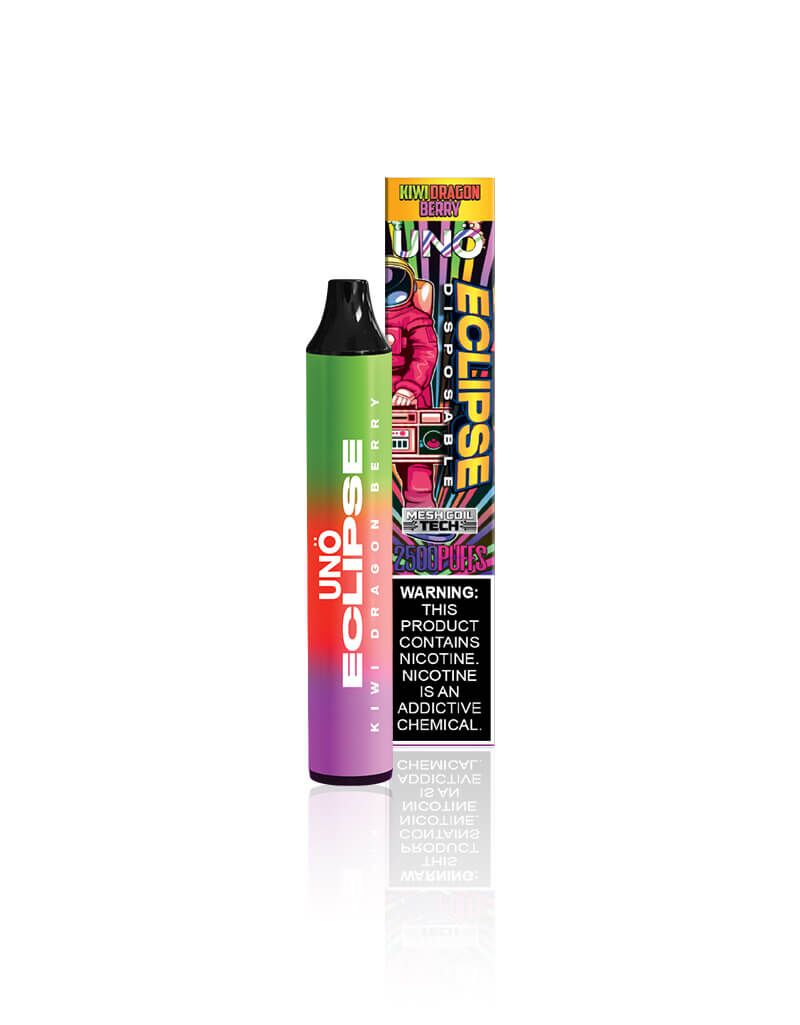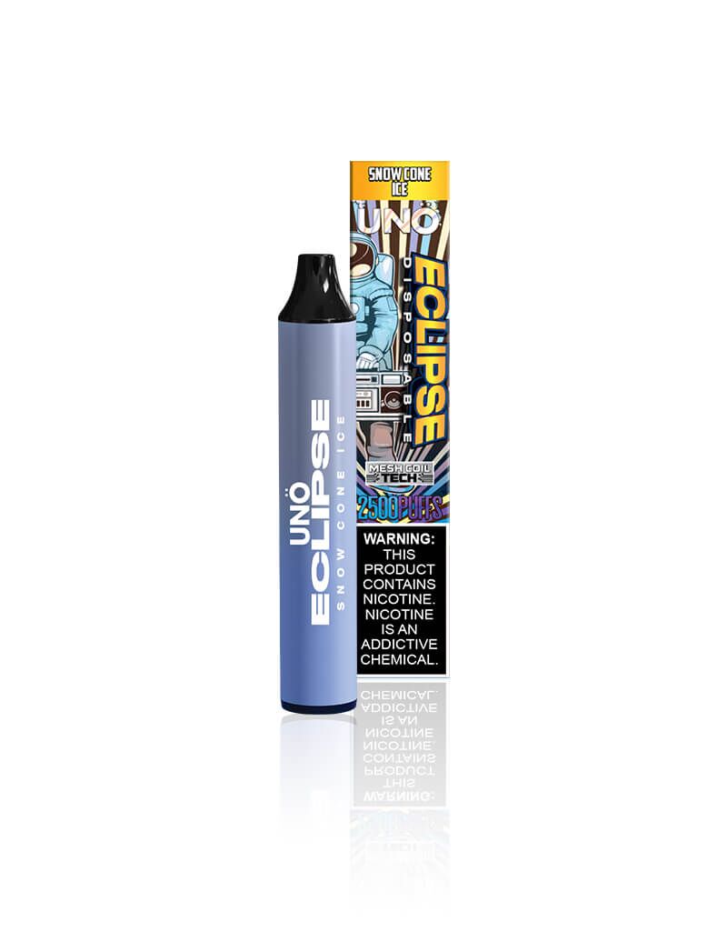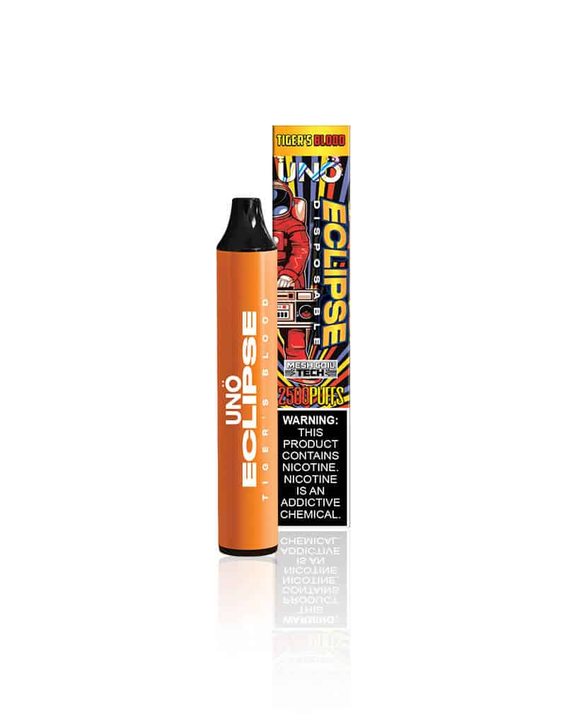 UNO Eclipse has a built-in 1100mAh battery which is powerful enough to last till you enjoy the last drop of vapor without any recharge. If you are a cloud chaser and prefer luscious, premium vape flavors, this disposable is perfect for you! Enjoy it even on the go in 16 delectable flavors, namely: Cool Mint, Strawberry Watermelon, Blue Razz Slushie, Watermelon Candy, Strawberry Yogurt, Rainbow, Kiwi Dragon Berry, Snow Cone Ice, Blueberry Raspberry, Peachy Mango Pineapple, Watermelon Spearmint, Jolly Apple, Black Dragon Ice, and Tiger’s Blood.